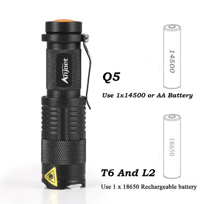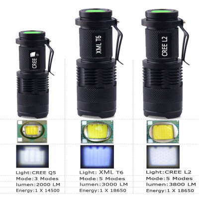 مواصفات Q5 Flahlight: 1. نوع باعث: Q5 LED 2. اسم الموديل: مصباح led 3. الكمية: 1 قطعة 4.LED باعث: Q5 5. الوضع: 3-وضع (عالية منخفضة-ستروب) 6. مصباح الحياة: 100,000 ساعة 7. اللون: أسود 8. اللون المنبعث: الضوء الأبيض 9. التبديل: غطاء الذيل كليكي/كليكي 10.Lens: عدسة محدبة 11.Case المواد: الألومنيوم دائم الطائرات الصف 12. البطارية: Q5:1x14500 البطارية ريماك: بطارية 14500 قابلة للشحن ، بطارية آ ليست قابلة للشحن 13. الأبعاد: 92 مللي متر (L) × 26 مللي متر (HD) × 20 مللي متر (TD) 14. الوزن الصافي (g):60g مواصفات T6 مصباح يدوي:1. نوع باعث: T6 LED 2. اسم الموديل: مصباح led بقدرة 2000 لومن 3. الكمية: 1 قطعة 4.LED باعث: T6 5. الوضع: 5-وضع (عالية المتوسطة منخفضة SOS-ستروب) 6. مصباح الحياة: 100,000 ساعة 7. اللون: أسود 8. اللون المنبعث: الضوء الأبيض 9. التبديل: غطاء الذيل كليكي/كليكي 10.Lens: عدسة محدبة 11.Case المواد: الألومنيوم دائم الطائرات الصف 12. البطارية: 1 × 18650 بطارية مواصفات مصباح يدوي L2:1. نوع باعث: L2 LED 2. اسم الموديل: مصباح led بقدرة 3000 لومن 3. الكمية: 1 قطعة 4.LED باعث: L2 5. الوضع: 5-وضع (عالية المتوسطة منخفضة SOS-ستروب) 6. مصباح الحياة: 100,000 ساعة 7. اللون: أسود 8. اللون المنبعث: الضوء الأبيض 9. التبديل: غطاء الذيل كليكي/كليكي 10.Lens: عدسة محدبة 11.Case المواد: الألومنيوم دائم الطائرات الصف 12. البطارية: 1 × 18650 بطارية تشمل المنتجات: Q5:1 * Q5 مصباح يدوي T6:1 * T6 مصباح يدوي L2:1 * L2 مصباح يدوي